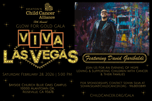 Keaton’s 13th Annual Glow for Gold Gala is our largest event of the year, featuring a Viva Las Vegas theme, with World-Renowned Artist David Garibaldi. Please join us for An Evening of Hope – Loving and Supporting Children with Cancer & Their Families, Saturday, February 28, 2026!